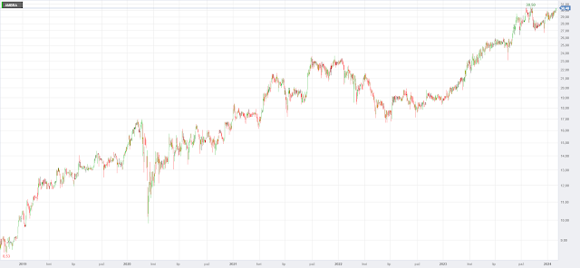 Przykładem spółki, do której w zasadzie nie muszę wcale zaglądać jest Ambra. Wykres w długoterminowym trendzie wzrostowym, aktualnie na ATH, a każda potencjalna korekta jest na ten moment dopuszczalna. Nie ma w co wnikać.
